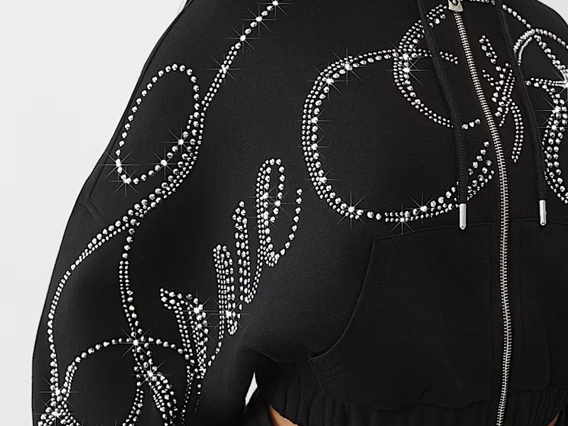 La próxima evolución del streetwear es el lujo personalizado : prendas que combinan identidad personal, diseño artístico y confección de alta calidad. La sudadera con capucha y cremallera frontal con pedrería encarna a la perfección este movimiento. Es moda con significado : una expresión de creatividad, individualidad y poder de marca.